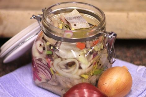 Varva sillen med lök och morötter. Slå på lagen och låt stå 1-2 dygn.