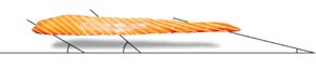 Som du ser på skissen ändras skivningsvinkeln gradvis så att vinkeln blir mindre närmare stjärten. Detta ger en jämnare storlek på skivorna över hela laxen.