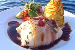 - Baconlindad Kapkummelfilé med rödvinsmörsås